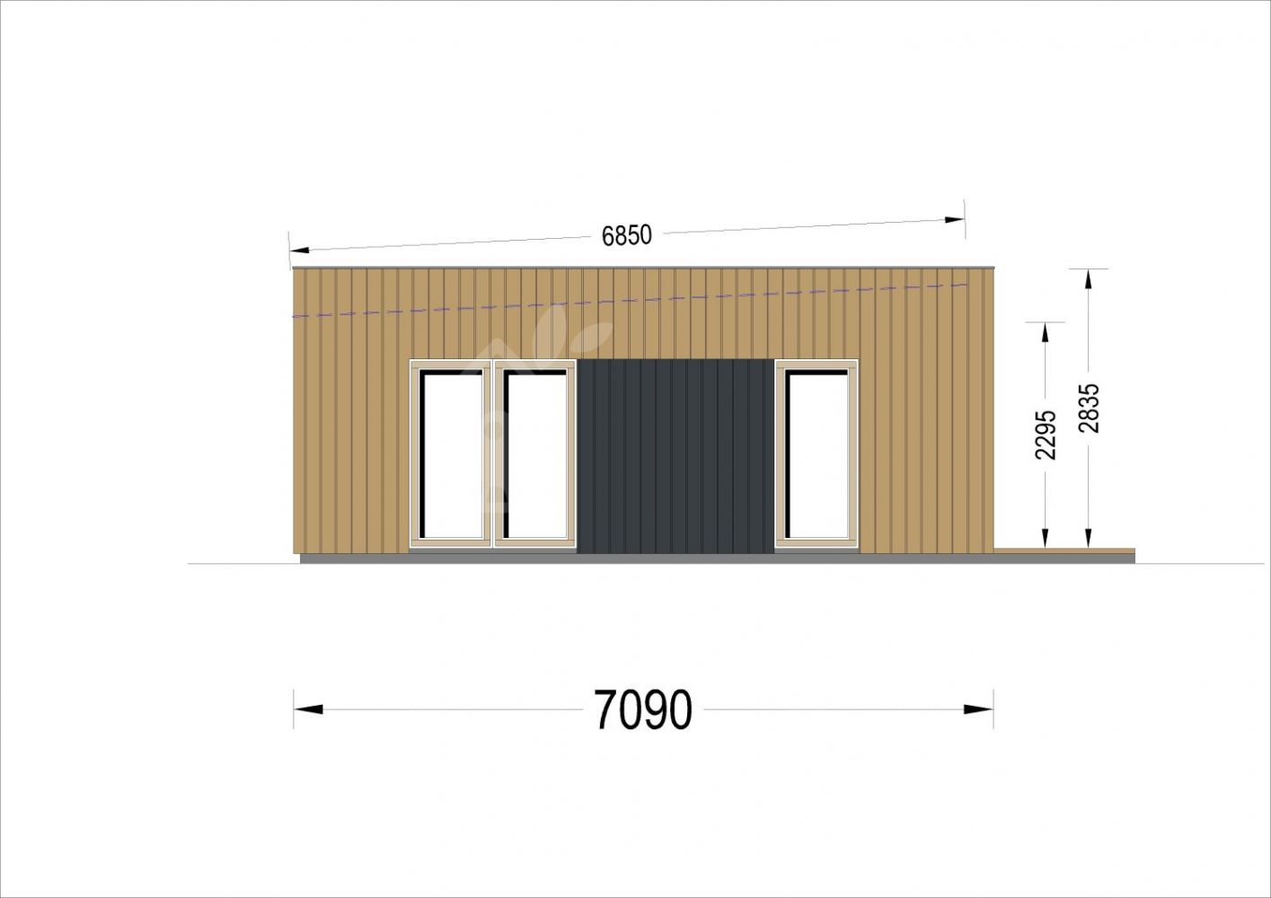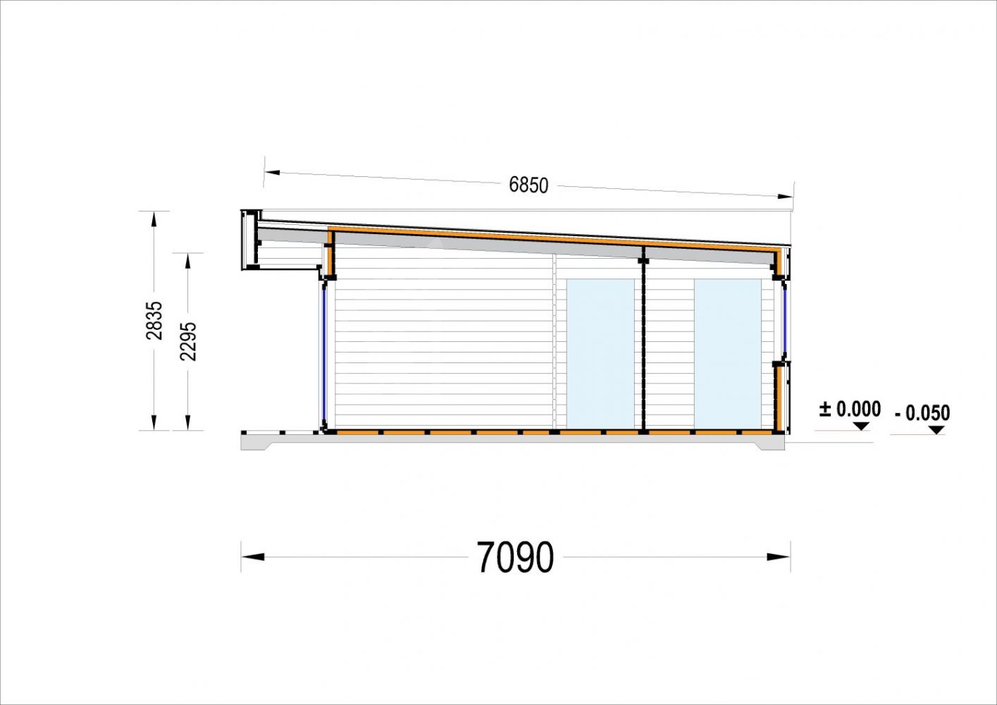 | Duvar | 44 mm ahşap kütük; 100 mm ahşap çerçeve (100 mm yalıtımlı); 25 mm ahşap çıta (dikey); 25 mm ahşap çıta (yatay); 18 - 20 mm ahşap kaplama |