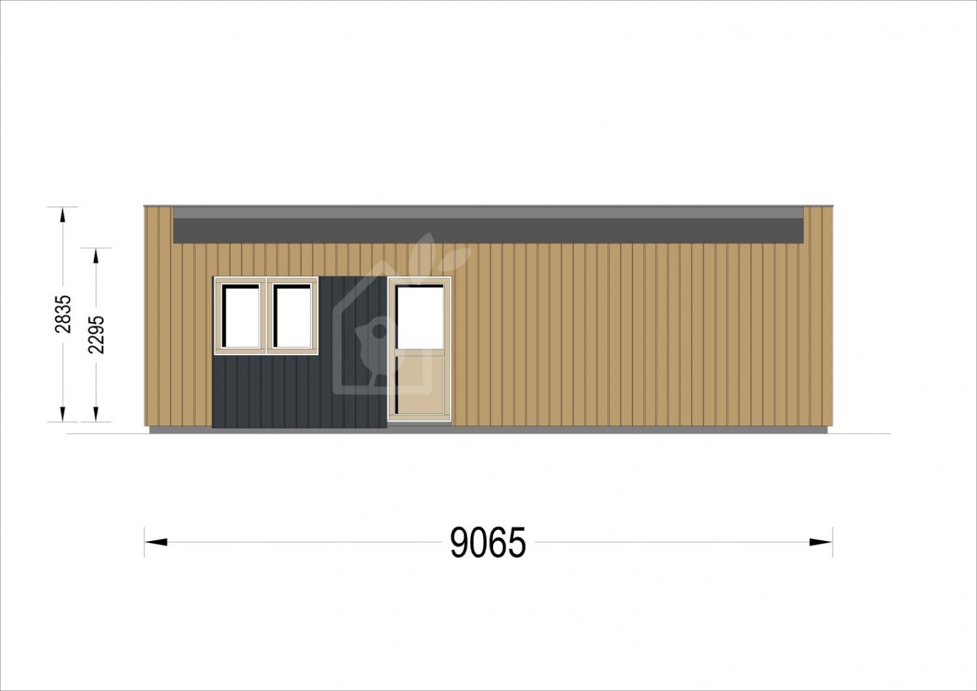 | Çatı | 19 - 20 mm kalınlığında lamba ve oluk levhaları; 145 mm ahşap kirişler (150 mm yalıtımlı); 25 mm ahşap çıta OSB levha |