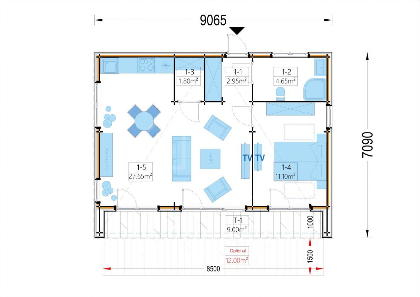 • 27 m² açık mutfaklı, konforlu yaşama hazır bir yerleşim.