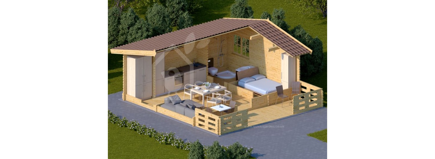 Since we only work with wood, we do not perform interior decoration. Electricity + water + bathroom + kitchen, and roof insulation are your responsibility.