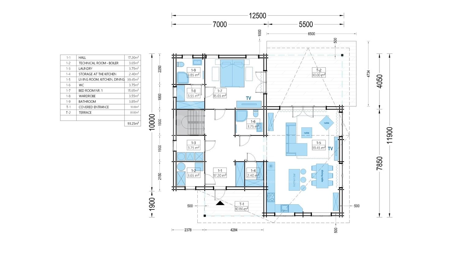 For example, we set up and deliver a 50m² house within 1 week. The installation of the house + all doors and windows + floorboards + ceiling boards are our responsibility. We hand over the keys after the wooden structure is assembled.