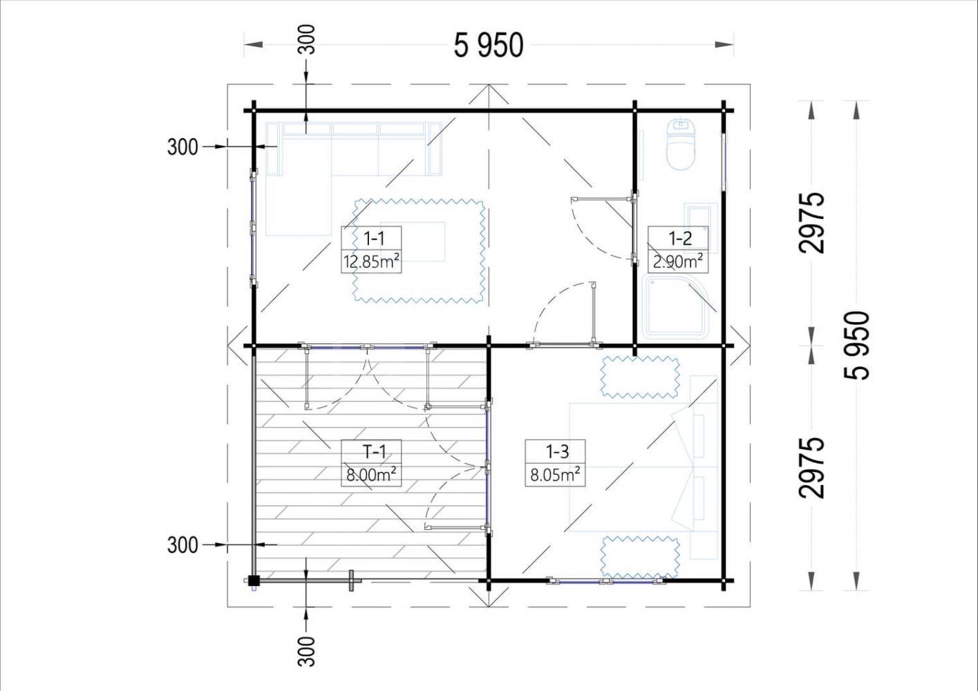 Since we only work with wood, we do not perform interior decoration. Electricity + water + bathroom + kitchen, and roof insulation are your responsibility.