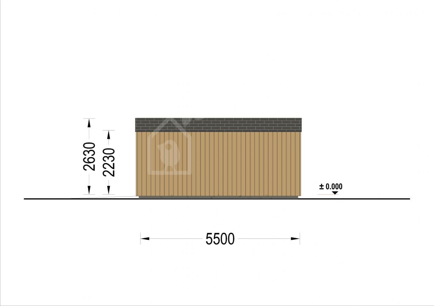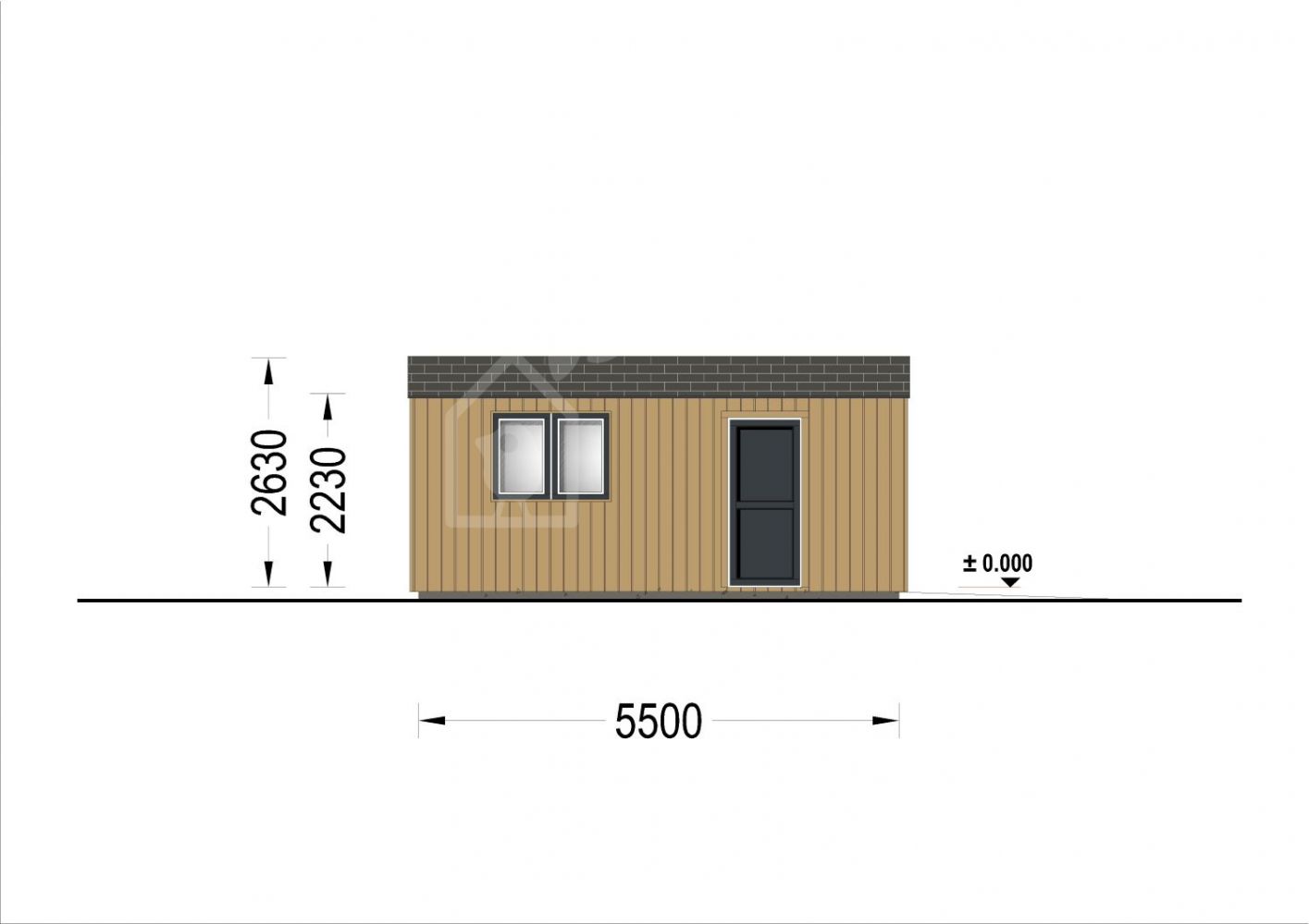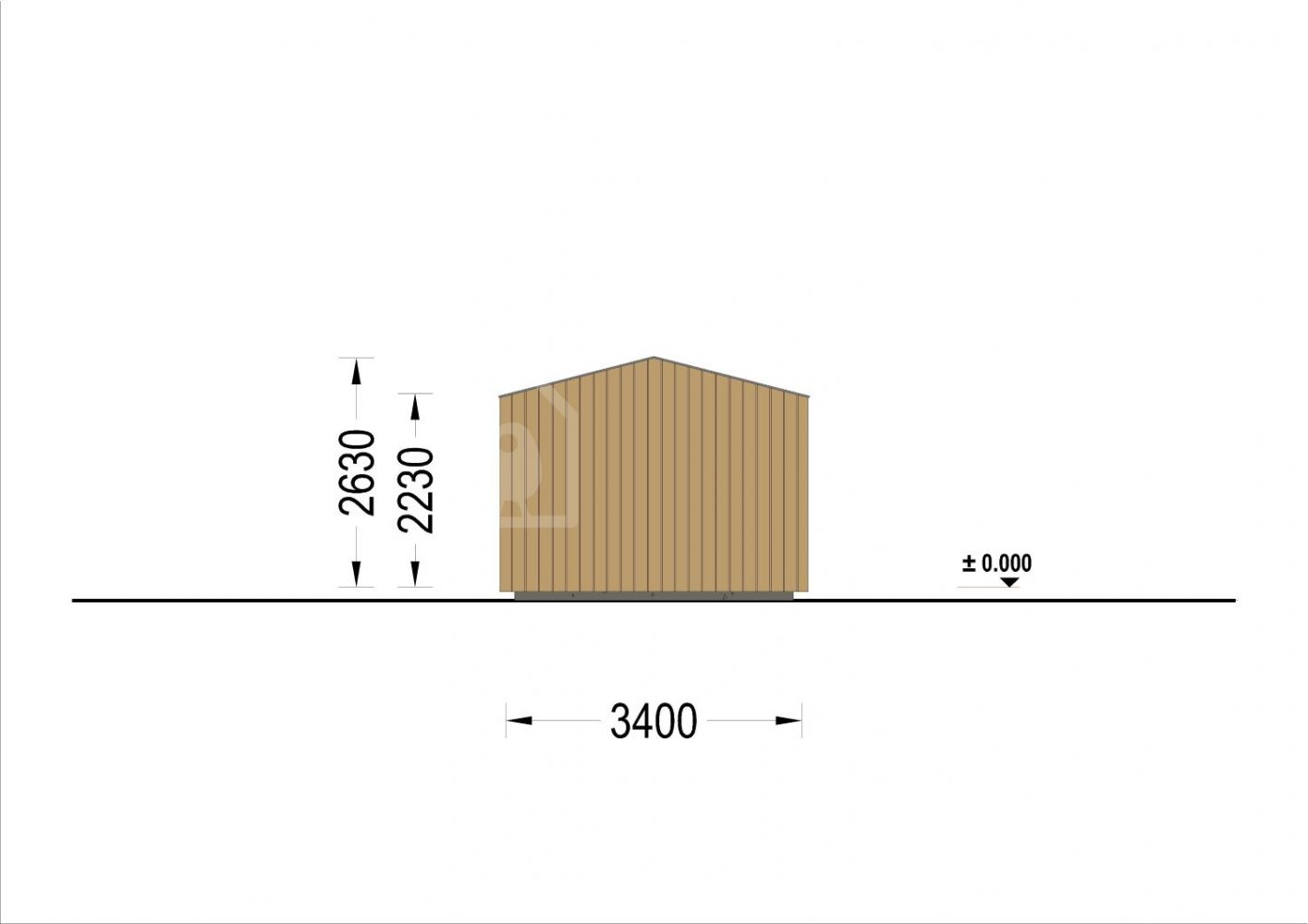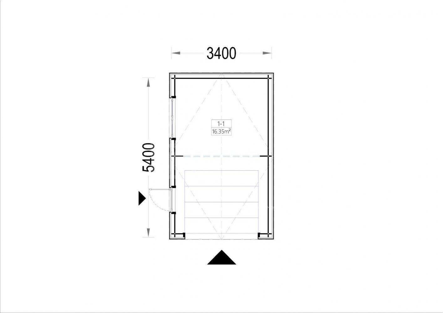 | Wall | 34 mm wooden log; 100 mm timber frame; 25 mm timber batten (vertical); 25 mm timber batten (horizontal); 18 - 20 mm timber cladding |